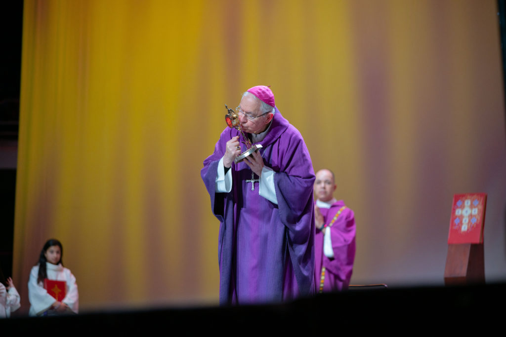 At the conclusion of Sunday’s closing Mass, Archbishop Gomez blessed attendees holding a reliquary containing a piece of Acutis’ pericardium (the membrane that protects the heart) brought from Italy by Figueiredo.