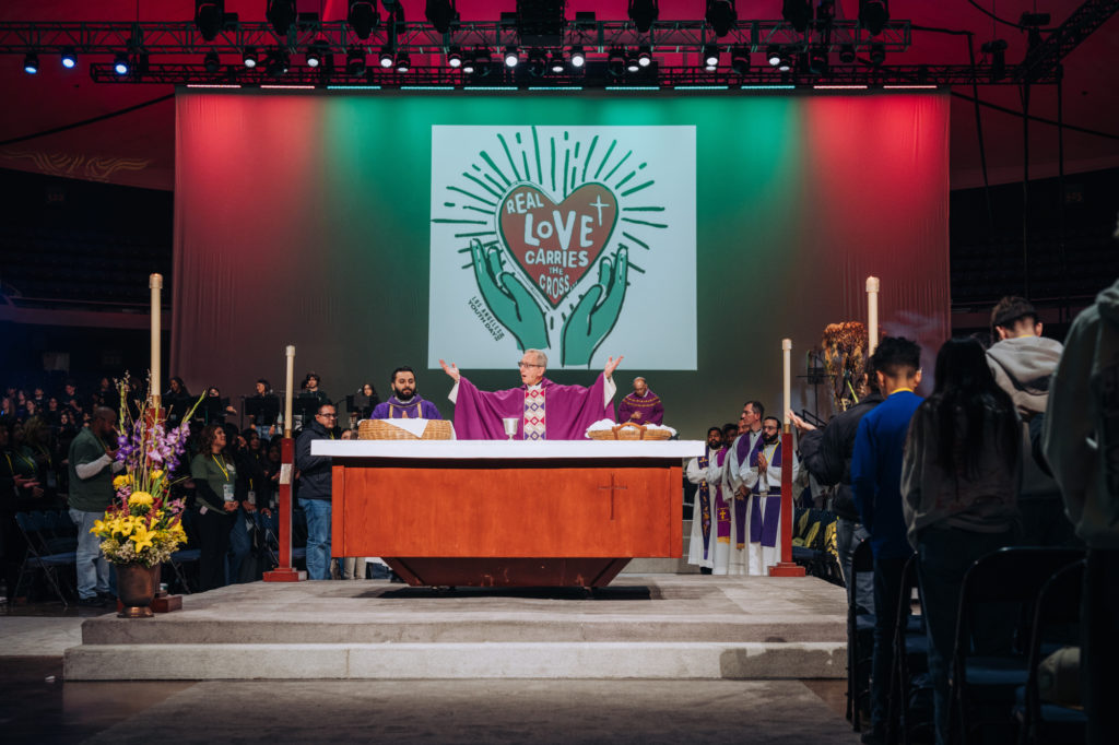 Much of the messaging geared toward the high-schoolers was rooted in the theme of the day, “Real Love Carries the Cross,” which was partly conceived by a select group of teens.