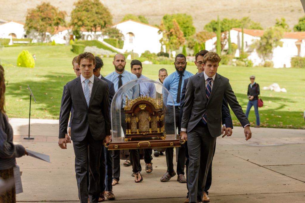 Giant banners of the popular saint adorned St. Therese Church in Alhambra, where the first-class relics of bones made their debut before traveling to nearby Sacred Heart Retreat House, Thomas Aquinas College in Santa Paula, and the Santa Teresita home in Duarte. At each location, attendees took in Mass, music, and testimonials.