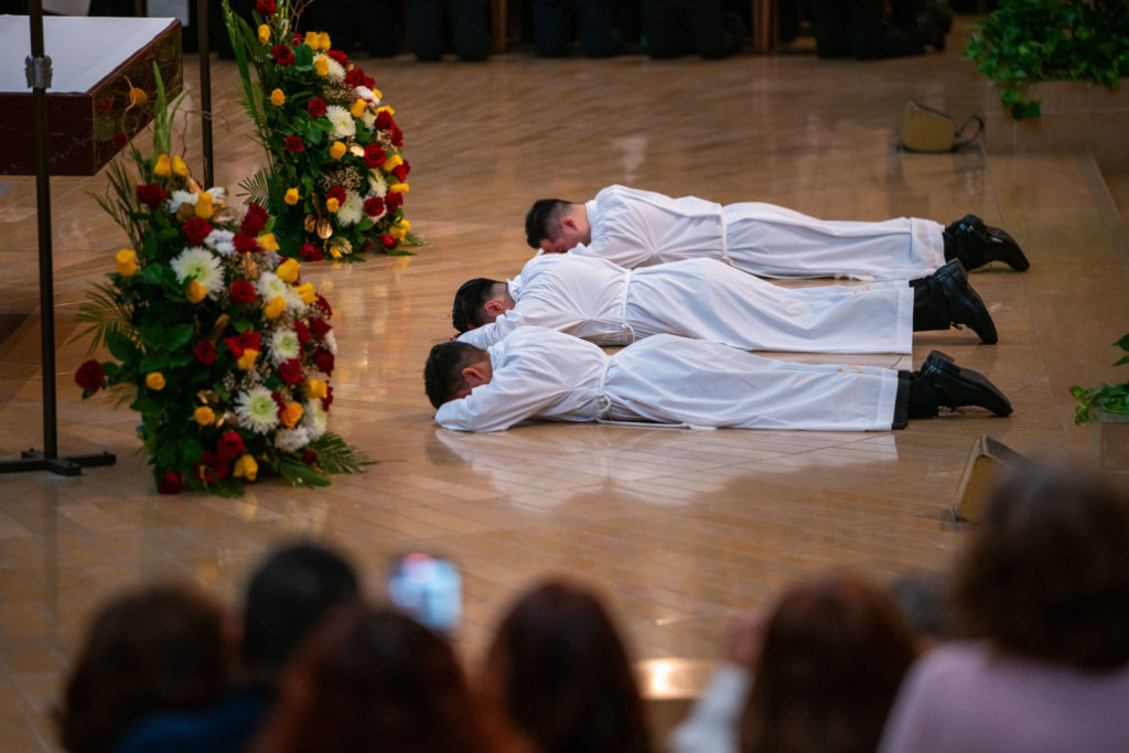 Later, they knelt one by one in front of Szkredka to answer a promise of obedience to the ordinary before moving to a profound part of every ordination: Lying prostrate around the altar while the kneeling crowd sings during the Litany of Supplication.