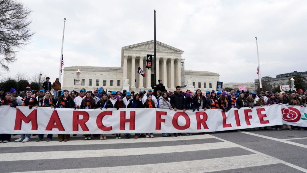 Pro-life chants, music and prayer mark the daylong event filled with colorful banners and handmade signs as people march around the U.S. Capitol to the Supreme Court building.