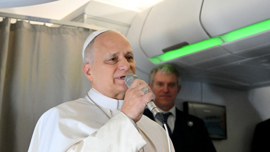 Speaking to journalists aboard the papal flight to Algiers on April 13, the pope responded to a question about a post by U.S. President Donald Trump.