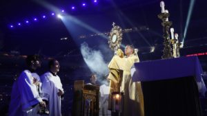 The 2024 National Eucharistic Congress included nationally known Catholic speakers and musicians alongside opportunities for service, fellowship and varied forms of Catholic liturgies at the Indiana Convention Center and adjacent Lucas Oil Stadium. Each evening culminated in Eucharistic adoration in the stadium.