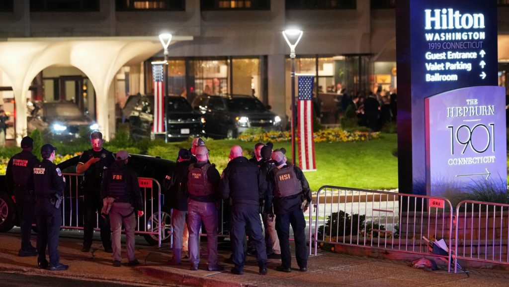 A separate briefing was subsequently held at the hotel, where Washington Mayor Muriel Bowser, Jeffrey Carroll, interim police chief of the city's Metropolitan Police Department, and federal law enforcement updated the media.