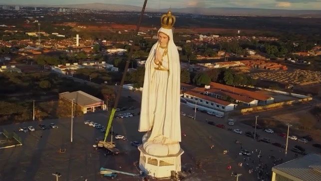 The 177-foot-tall statue was created by the artist Ranilson Viana, inspired by the replica of the pilgrim image venerated in the cathedral of Our Lady of Penha, a work by the Portuguese sculptor Guilherme Ferreira Thedim.