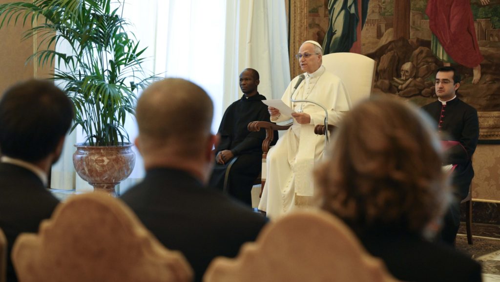 The next morning Pope Leo met at the Vatican with dozens of members of the Conservatives and Reformists Group of the European Parliament. The group describes itself as "center-right" and focused on "decentralization, connecting people and business, promoting fair and free trade, and fostering a safe and secure Europe."
