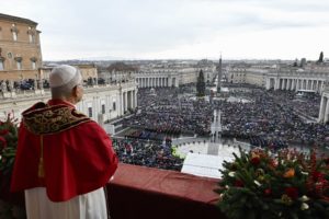 As is customary, the pope used his message to call attention to urgent needs and suffering in places around the globe and to urge people to help relieve that suffering.