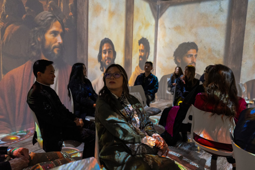 Spectators view a reenactment of the Last Supper in the 360-degree immersive theater. (Diocese of Orange)